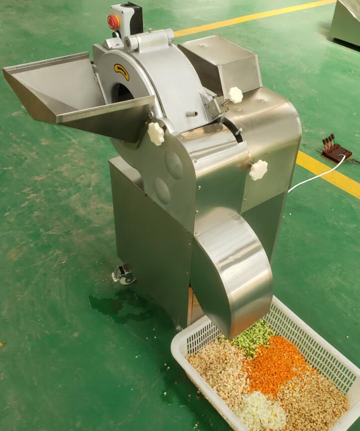 1 特点:采用三维复合刀具,一次成切丁,适合常用于水果和根茎类蔬菜切丁或切颗粒的客户,形状规则,切面光滑,整齐美观,该切丁机操作方便,耗能低,效率高,采用铝镁合金及不锈钢材料,防腐,美观,符合卫生标准。